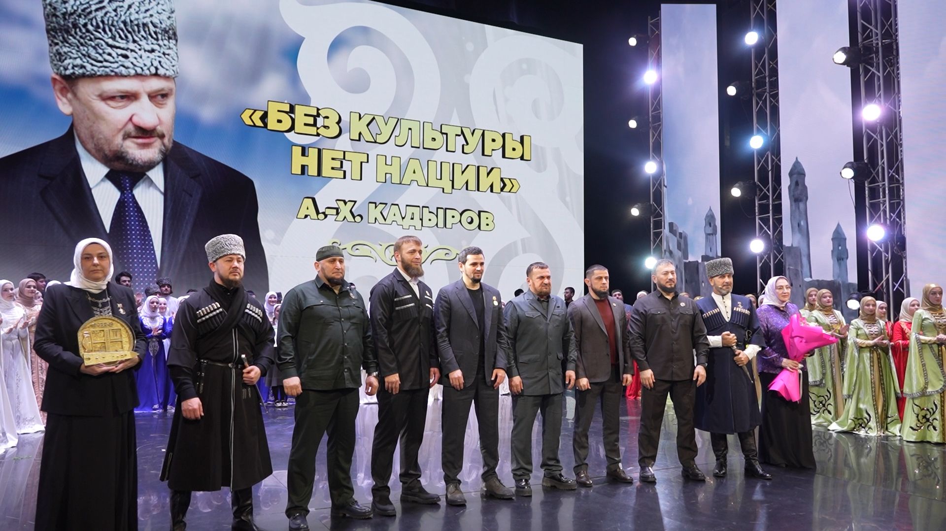 Город Грозный стал победителем 17-го Республиканского фестиваля-конкурса «Синмехаллаш» – 2025 (Духовные ценности). Финал одного из самых крупных культурных событий года состоялся сегодня на сцене Дворца торжеств имени Дагуна Омаева. Подведение итогов прошло с участием Мэра столицы Хас-Магомеда Кадырова, Министра Культуры ЧР Исы Ибрагимова, Министра ЧР по национальной политике, внешним связям, печати и информации Ахмеда Дудаева, а также руководителей министерств и ведомств региона. В рамках фестиваля-конкурса в течение всего года состязались команды, представляющие учреждения культуры всех городских округов и муниципальных районов Чечни. В финал вышли команды Грозного, Аргуна, Шали и Шатоя. По итогам завершающего этапа первое место и звание абсолютного победителя фестиваля-конкурса было присуждено столичной команде. Второе место занял коллектив из города Аргун. Третье место поделили между собой представители Шалинского и Шатойского муниципальных районов. Награду победителя на сцене вручили Мэру столицы Хас-Магомеду Кадырову. «Победа Грозного в таком важном проекте, как «Синмехаллаш», — это общая заслуга наших творческих коллективов, которые с огромной любовью и глубоким пониманием донесли до зрителей и жюри суть наших национальных ценностей. Этот фестиваль, инициированный Главой Чеченской Республики, Героем России Рамзаном Ахматовичем Кадыровым, является фундаментом для сохранения нашей уникальной культуры, языка и традиций для будущих поколений», — отметил Хас-Магомед Кадыров. Стоит отметить, что от Регионального общественного фонда имени Первого Президента ЧР, Героя России Ахмата-Хаджи Кадырова (Дала г1азот къобалдойла цуьнан) финалистам были вручены денежные поощрения: 1 000 000 руб. – за первое место, 700 000 руб. – за второе и за третье место – 300 000 руб.