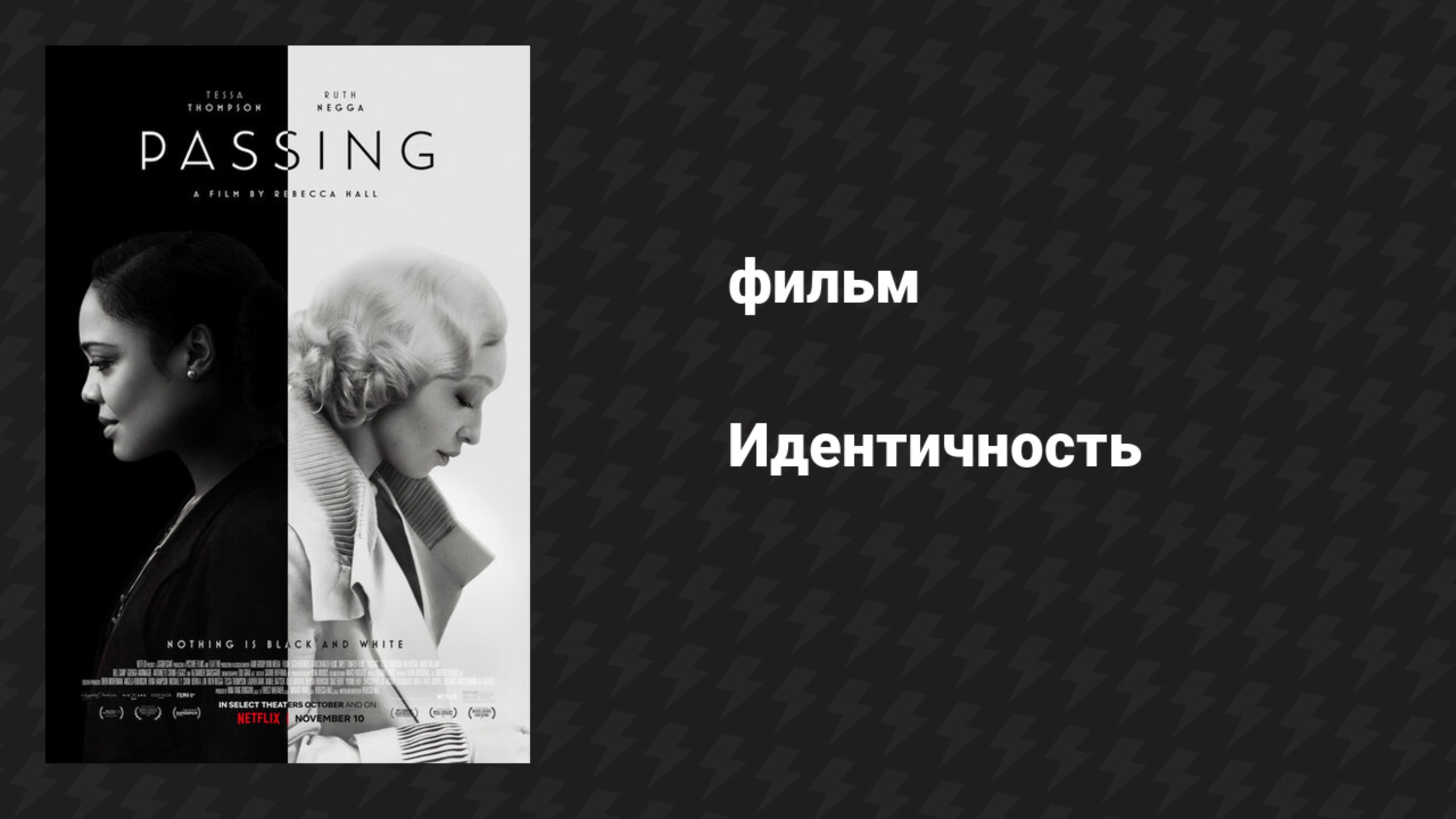 США, двадцатые годы. Айрин, афроамериканка с необычайно светлой кожей, встречает в отеле свою старую знакомую — Клэр, такую же светлокожую афроамериканку. Старые подруги рассказывают о себе: Айрин вышла замуж за темнокожего врача Брайана, а Клэр привыкла притворяться белой — её спутником жизни стал зажиточный белый расист. Они разговаривают весьма откровенно, но в конце концов в беседу вклинивается муж Клэр, Джон, который весьма грубо отзывается о чернокожих. Это задевает Айрин, и она уходит. Однако Клэр стремится возродить старую дружбу. Год выпуска: 2021 Жанр: драма Продолжительность: 98 мин. Режиссёр: Ребекка Холл В ролях: Тесса Томпсон, Рут Негга, Андре Холланд, Билл Кэмп, Гбенга Акиннагбе, Антуанетта Кроу-Легаси, Александр Скарсгард, Юстус Дэвис Грэм, Этан Барретт, Эшли Уэр Дженкинс Cтрана: США, Великобритания, Канада Cтудия: Picture Films, Film4 Productions, Significant Productions, Endeavor Content, AUM Creative, XRM Media, Gamechanger Films, TGCK Partners, Sweet Tomato Films Здесь вы можете посмотреть кино Идентичность в русском синхронном переводе в хорошем качестве (4k, 2k, Full HD, 1080p) совершенно бесплатно.