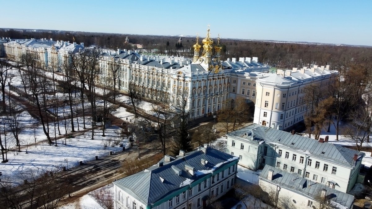 Екатерининский дворец , Лицей и Певческая башня с высоты