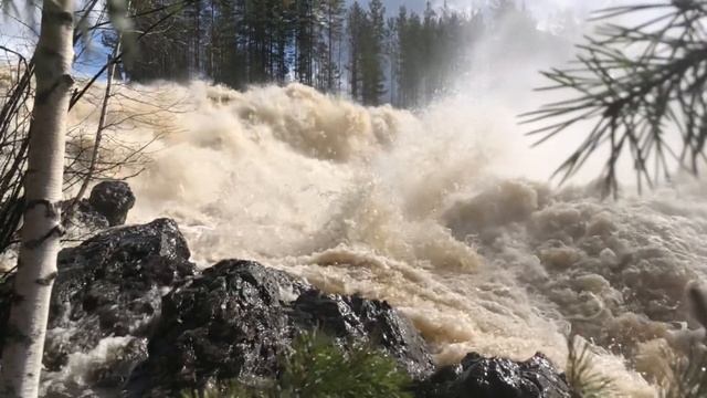 Гирвас 2023, сброс воды на «Пальеозерской ГЭС» самый большой водопад в Карелии, правда сезонный
