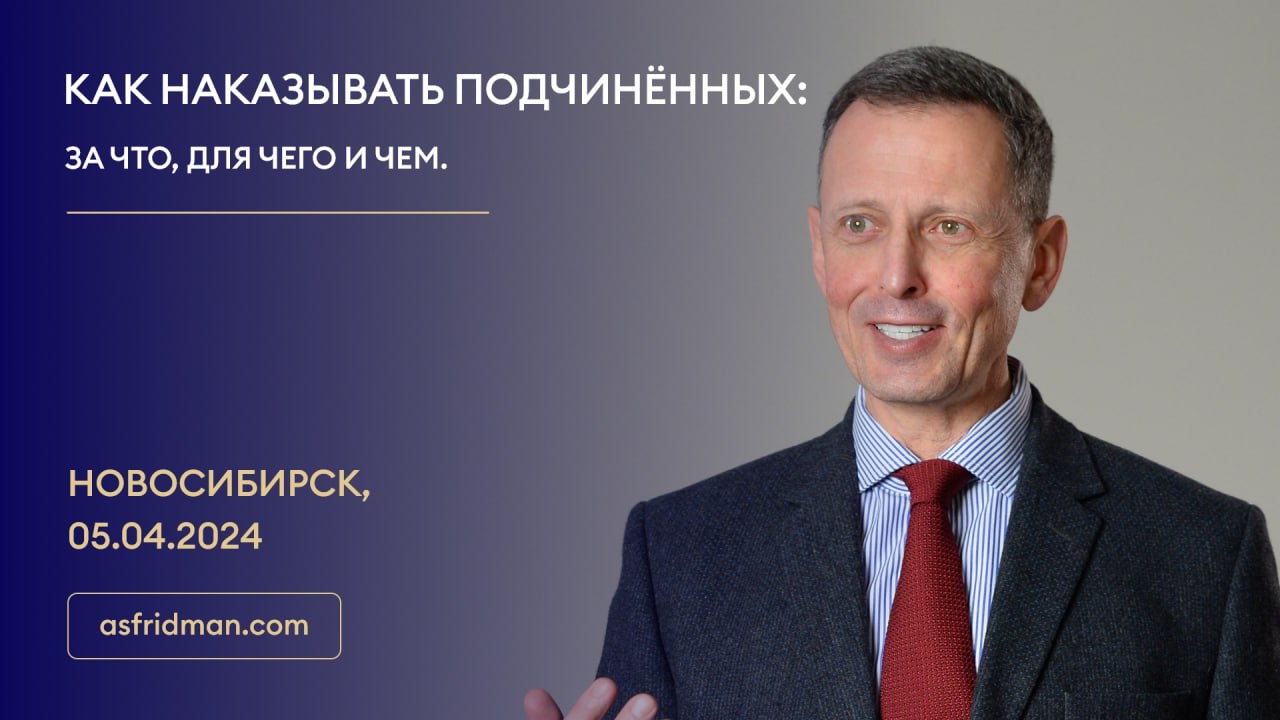 КАК НАКАЗЫВАТЬ ПОДЧИНЁННЫХ: За что, для чего и чем. Семинар Александра Фридмана в Новосибирске, 5 апреля 2024 года. Подробности и регистрация: https://fridman.kadrek.ru/#april5