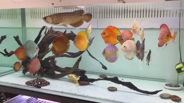 Аквариум с дискусами,арованой и скатом
