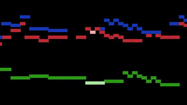 Mvt. 11, Sonata in e minor, from Erster Theil Zwey-stimmiger Sonatan und Suiten, for violins, viola da gamba and basso continuo, by Dietrich Becker, with animated score. FAQ: Q: Who is Dietrich Becker? A: A German Baroque violinist and composer. You can read more about him here: http://en.wikipedia.org/wiki/Dietrich_Becker Q: What do the colors mean? A: Each color represents a different instrument, or a different part of another instrument. Q: How did you make this animation? A: With a program I wrote in Python. I also used FFMPEG, SoX, TiMidity, FluidSynth, Python Image Library, and midicsv. All excellent, free, open-source software. Q: Could you make a video of this other song? A: Sure! Well, maybe. For copyright reasons, it has to be public domain music. Just comment below, or send me a message and I'll see what I can do.