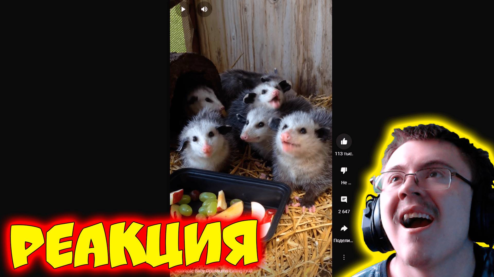 Если вы автор ролика и вам не понравилась реакция напишите об этом и я ее удалю. Adorable Baby Opossums Eating Fruit ( @bluebeji ) Видео из реакции: https://www.youtube.com/shorts/TBsDFFtmiuE Можете поддержать меня копеечкой: https://www.donationalerts.com/r/dragfes Ссылки: 𝐃𝐢𝐬𝐜𝐨𝐫𝐝: https://discord.gg/VP4rpHwKka 𝐓𝐰𝐢𝐭𝐜𝐡: https://www.twitch.tv/dragfess Группа ВК: https://vk.com/dragfess Телеграмм: https://t.me/Dragfess_Stream Группа Steam: https://steamcommunity.com/groups/DragfessTeam Чат: https://t.me/DragfessikChatik Бусти: boosty.to/dragfess Я не пытаюсь никого оскорблять и несу лишь развлекательный характер, если вам ролик понравился поставьте лайк, колокольчик и подпишитесь, т к это продвигает мой канал. Заранее спасибо. #Реакция #Dragfess #@bluebeji
