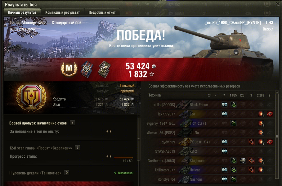 ЛИНИЯ МАННЕРГЕЙМА МАСТЕР на Т-43 ОПЫТ: 1221 СУММАРНЫЙ УРОН: 4118