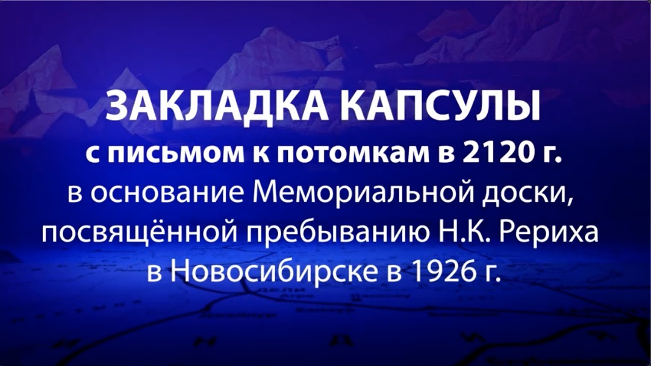 Закладка капсулы с письмом к потомкам в 2120 год в основание постамента с Мемориальной доской, посвящённой пребыванию экспедиции Н.К. Рериха в Новосибирске в 1926 году. Полная трансляция: Торжественное собрание СибРО, посвященное 146-летию Н.К.Рериха ЧАСТЬ 1/3. https://youtu.be/-cxFlbAV5OE 1. Поэма Н.Д. Спириной о Н.К. Рерихе «ВЕСТНИК». 2. Н.М. Кочергина. «Истинный наставник и друг человечества». Воспоминания современников о Н.К. Рерихе. 3. Т.М. Деменко. Представление первых выпусков нового проекта СибРО «Держава Рерихов». 1-й выпуск — Мемориальный кабинет Н.К. Рериха в Государственном музее Востока (Москва). 4. О.А. Ольховая. «Наш путь решён». 5. 2-й выпуск проекта «Держава Рерихов». Памятник Николаю Рериху на Катуни. 6. Информация о главных событиях месяца в СибРО. (завершение 1 части прямого эфира) ЧАСТЬ 2/3: 7. Закладка капсулы с письмом к потомкам в 2120 год в основание постамента с Мемориальной доской, посвящённой пребыванию экспедиции Н.К. Рериха в Новосибирске в 1926 году. ЧАСТЬ 3/3. https://youtu.be/P1SqsqUHt6A 8. Концерт классической музыки. В исполнении солистов Новосибирской государственной филармонии прозвучат произведения Чайковского и Рахманинова для фортепиано и скрипки. #музейРерихаНовосибирск, #РерихвРоссии, #мемориальнаядоскаРерих -------------------------------------------- Помочь проектам СибРО: https://sibro.ru/dari-dobro/ Благодарим наших постоянных помощников! -------------------------------------------- Канал Сибирского Рериховского Общества и Музея Николая Рериха в Новосибирске https://www.youtube.com/channel/UCOy_IPfEW_uKJU7lY6HwEaA Канал Трансляции СибРО https://www.youtube.com/channel/UCtl9xwOporefIWfINDnFlKQ Сайт: https://sibro.ru Группы: VK https://vk.com/roerichmuseumnsk OK https://ok.ru/roerichmuseum FB https://facebook.com/roerichmuseumnsk IG https://instagram.com/roerich_museum_novosibirsk/