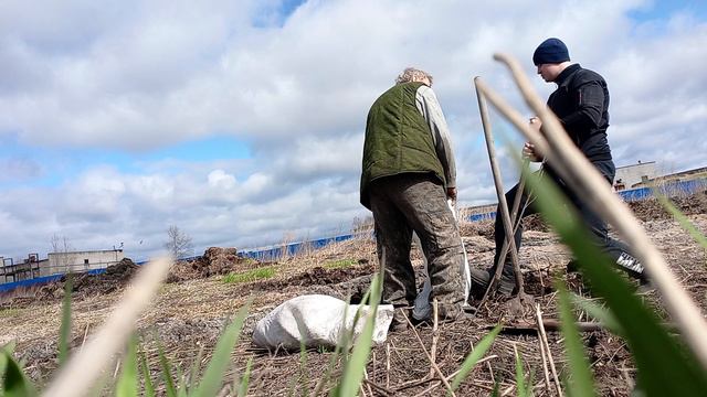 Ездили с отцом за землёй.