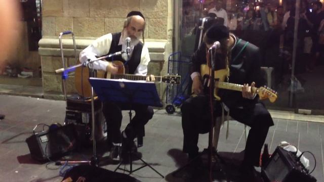 echoes- pink floyd play by two rabbai guitar street player artist at jerusalem The gat Brothers