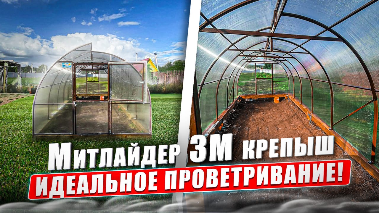 МИТЛАЙДЕР 3М КРЕПЫШ 3Х6. ЭФФЕКТИВНОЕ ПРОВЕТРИВАНИЕ. Хобби? Увлечение? Или желание вырастить и скушать свои овощи? Тогда вам нужна теплица! И самое главное чтобы хорошо проветривалась и зимой не обрушилась под толщей снега?? Встречаем, теплица «Митлайдер 3М» Ширина 3 Метра Длина 6 Метров Высота 2,3 метра Верхние фрамуги ручные в комплекте, установлены термоприводы. Каркас изготовлен из оцинкованной профильной трубы двух видов: 20/40/1,4 и 20/20/1,2 мм ✅ Защита от коррозии: гальваническое цинкование и полимерно порошковая покраска цвет 8017 шоколад Задавайте вопросы, с удовольствием ответим Заказать расчет и консультацию Тел.: +7(343) 201-14-05 WhatsApp? +7 (902) 584-41-15 ? Екатеринбург, Климовская 23 ? ural-usadba.ru