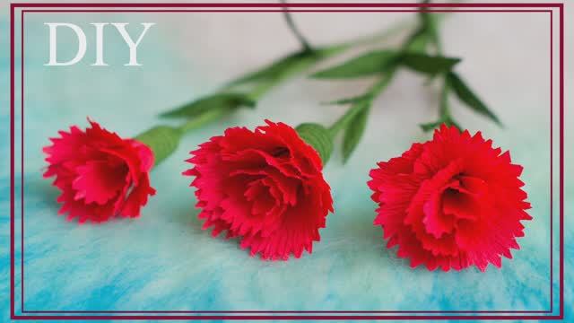 Гвоздика из гофрированной бумаги своими руками