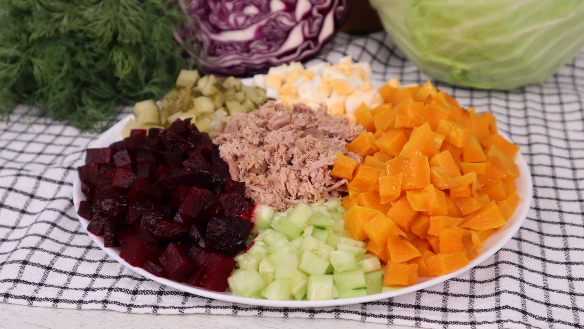 📖Ингредиенты: Тыква сырая: 400г Свекла: 1 крупная Огурец свежий: 1шт Огурцы маринованные: 2-3шт Яйца: 2шт Тунец консервированный: 1 банка (можно без него) Для заправки: раст.масло 2 ст.л или майонез Соль: по вкусу