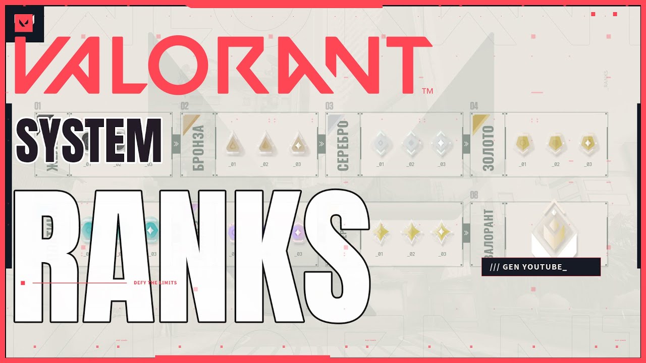 Всего существует восемь уровней рангов, каждый из которых разделен на три ступени: "Железо", "Бронза", "Серебро", "Золото", "Платина", "Алмаз", "Бессмертный" и наш самый высокий ранг – "ВАЛОРАНТ". Итак, вот небольшой набор основных идей, подробнее о которых я сейчас расскажу. Для участия в соревновательном режиме потребуется сыграть 20 матчей без ранга. Всего рангов 8, у каждого из них 3 ступени (за исключением самого высокого ранга – "ВАЛОРАНТ"). Играть можно группами до 5 человек, разница в рангах с которыми не превышает 2 ранга. Если вы не участвовали в соревновательных матчах в течение последних 14 дней, то ранг не будет отображаться, но понижаться он также не будет. Ранг, полученный в ходе закрытой беты, обнулится после выхода игры. #Valorant #RANKs #GEN =============================================== Полезные видосы: КАК ПОВЫСИТЬ FPS В VALORANT - https://www.youtube.com/watch?v=LxPyf3YtbtY Как понизить пинг в Валорант - https://www.youtube.com/watch?v=h1Z-Y9DYoQs Как разблокировать агента в Valorant - https://www.youtube.com/watch?v=gEpHhw3vt6o КАК НАСТРОИТЬ ПРИЦЕЛ В VALORANT - https://www.youtube.com/watch?v=FCTaxLciiAQ Как получить бесплатный скин в Валорнат - https://www.youtube.com/watch?v=3ne038bOpME ===============================================