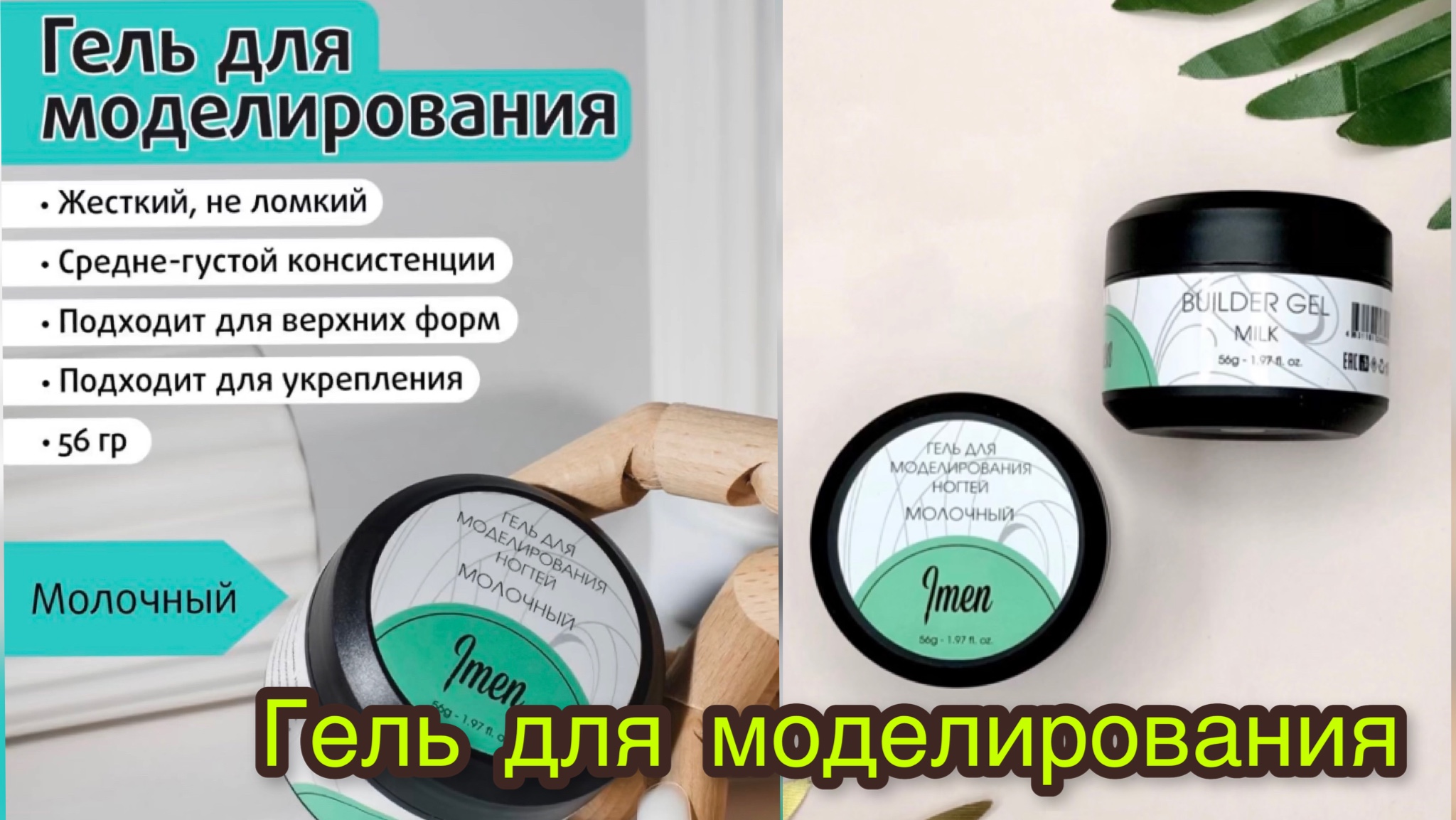 Жесткий, конструирующий гель Подходит, чтобы сделать ремонт, в тонкий слой или укрепление и моделирования ногтей. Не содержит абразивных частиц. Если использовать его для моделирования, то поджатие арки - на 10 сек. Держит арку на протяжении всего времени носки. Подходит для моделирования на верхних формах. Легкий в опиливании. Применение: На подготовленный ноготь наносим безкислотный праймер (очень тонким слоем), затем наносим базовое покрытие. Подойдет любая каучуковая база. Время полной полимеризации - 2 мин. Необходима лампа LED / UV 48 W. Гель для моделирования IMEN MILK Артикул на WB: 74817421 https://www.wildberries.ru/catalog/74817421/detail.aspx?targetUrl=MS&size=126189671 Онлайн магазин www.imennails.ru