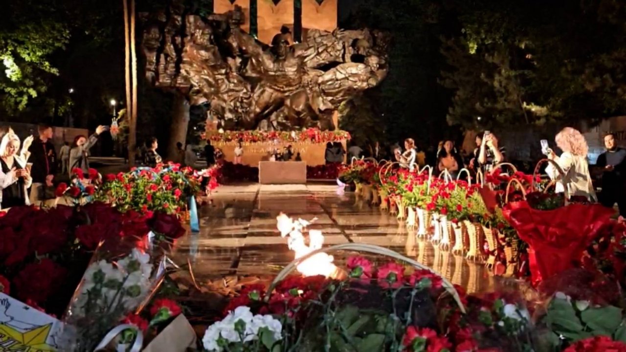 Стою у вечного огня! - стихи. ночь 9 мая парк 28-ми героев панфиловцев! Море цветов...