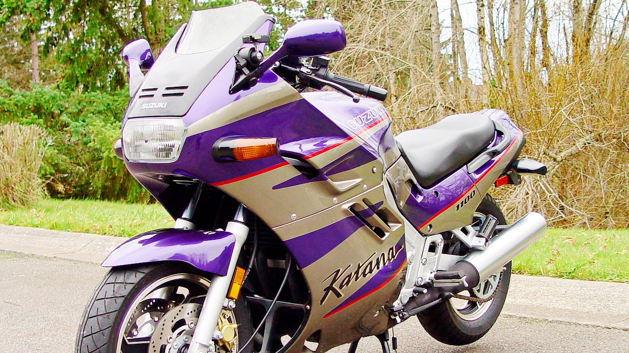 #SuzukiGSX1100FKatana #Спорттурист #Спортбайк Мотоцикл Suzuki GSX1100F katana впервые был представлен в октябре 1987г как Спорт турист.Это был действительно очень комфортный мотоцикл на дальние поездки. Он обладал отличной ветрозащитой с электрическим регулируемым ветровым стеклом,которое использовало по существу тот же механизм, что и автомобильные электростеклоподъемники,плюс мотоцикл имел очень удобную посадку с отличным сиденьем,благодаря чему можно было преодолевать большие расстояния не уставая.А производительная ,по тем временам ,силовая установка ,позволяла мотоциклу разгонятся до максимальной скорости в 252 км/ч. Suzuki GSX1100F считался одним из самых быстрых мотоциклов в мире на тот момент.