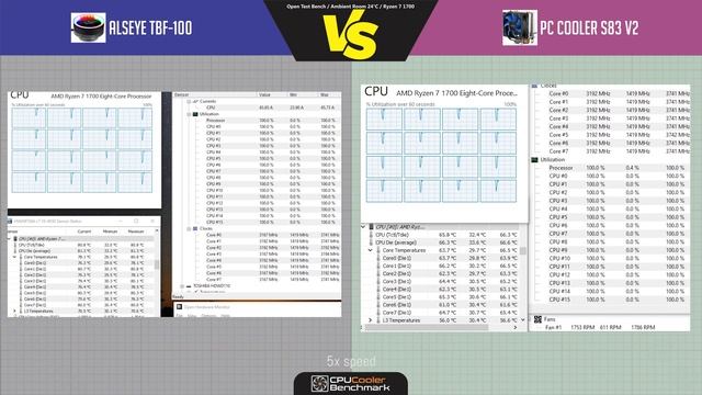Alseye TBF-100 VS PC Cooler S83 V2 Open Test Bench Ambient room 24 °C System: - AMD Ryzen 7 1700 - Gigabyte B450M S2H - 2x4GB DDR4 - 256 GB SSD NVMe #Alseye #PCCooler