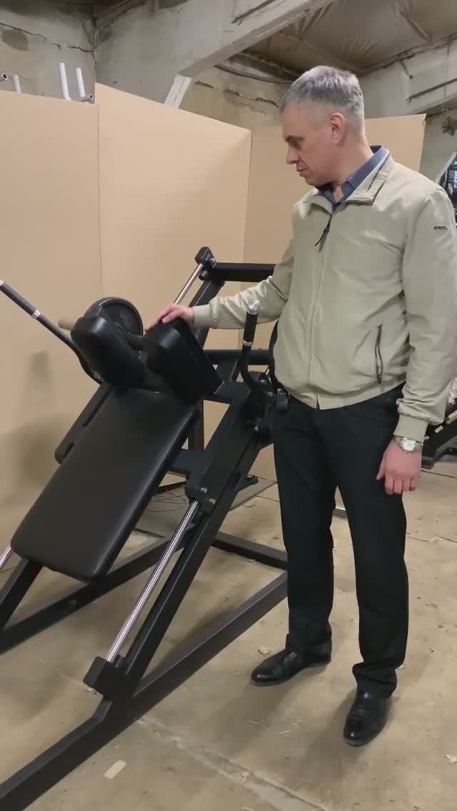 Краткое техническое описание спортивного тренажёра Гакк-машина AV305/80 AVENIR sport и демонстрация выполнения приседаний.