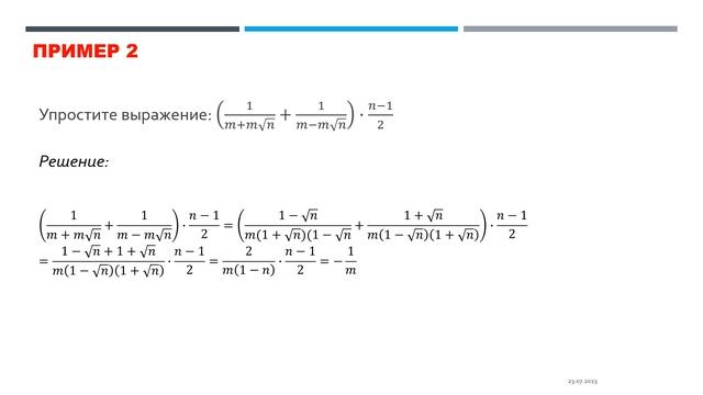 ОСВОБОЖДЕНИЕ ОТ ИРРАЦИОНАЛЬНОСТИ В ЗНАМЕНАТЕЛЕ ЧИСЛИТЕЛЕ