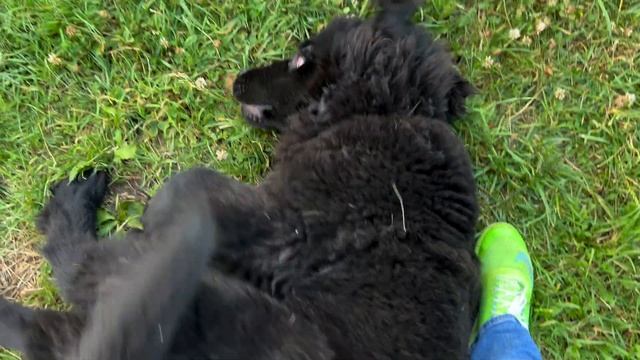 Английский бульдог Черри играет с ньюфаундлендом Бураном
