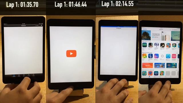 A speed test in celebration of the 5th anniversary of the iPad mini (All of them are final versions of the respective iOS; 6.1.3, 7.1.2, 8.4.1, 9.3.5)
