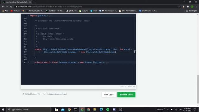 Inserting node at the beginning of the linked list || programming tech || Java