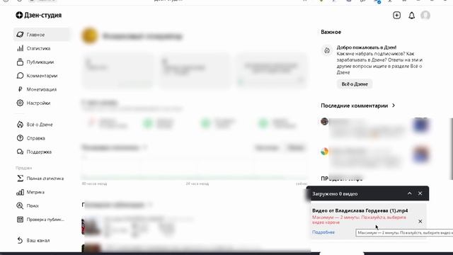 Всем привет вы на канале Мечтатель, и сегодня мы выясним как загрузить видео в дзен больше 2 минут???? Наткнулся на такую проблему и опять же методом тыка, смог её решить ну и подумал было бы хорошо об этом рассказать, вдруг кому будет полезно. Надеюсь помог хотя бы кому то ставьте лайки не ставьте дизлайки комментируйте видео и пока пока = -)