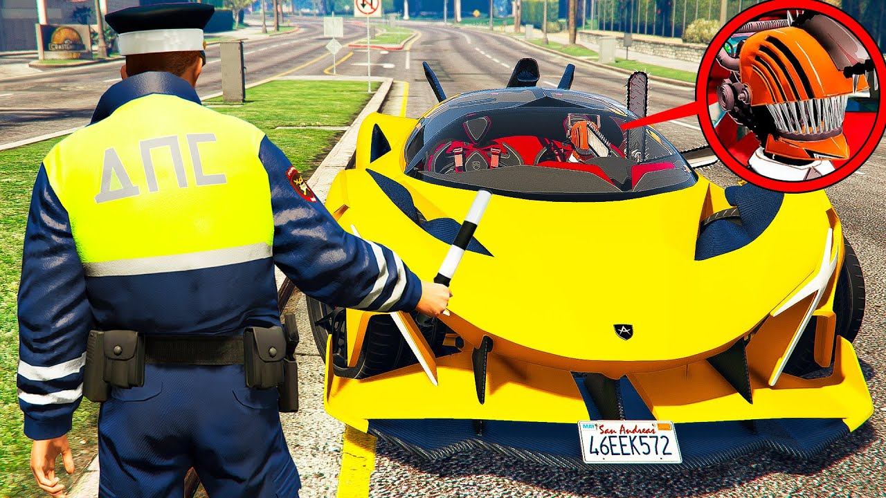 ГАИШНИК ОСТАНОВИЛ ЧЕЛОВЕКА БЕНЗОПИЛУ В ГТА 5 МОДЫ! РЕАЛЬНАЯ ЖИЗНЬ ДПС ОБЗОР МОДА GTA 5 MODS ВИДЕО