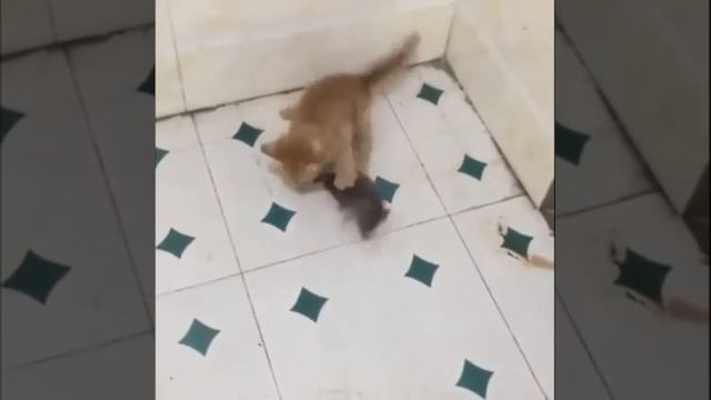 бой котенка с крысой