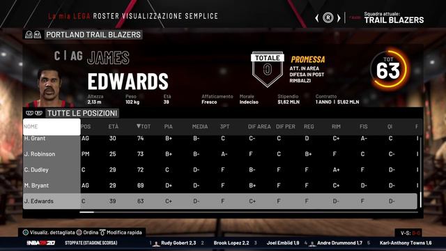 NBA 1994\ 1995 Roster PS4 for NBA 2K20 This is what you will find in this roster (PS4): - Correct info, years, bio for all the players - Accurate Cap or Lookalike for all the missing players - Head Coach correct names (and lookalike face if available) - Accessories and Shoes for all the players, no 2k Shoes - Signature Styles for the most important players - End of Regular Season Roster - At least 12 real players for all the teams from the 94\95 season - All the 27 teams of the 94\95 season will be completed with 3 "John Smith" for player n.13, 14 and 15 to avoid the free agent when you start MyLeague if necessary. Every day (i hope!) i will release a team here on the board along with a little YT video preview on roster and stats. I hope you will enjoy this work. NBA 1994-1995 ROSTER 1. CHICAGO BULLS (95-96 Bulls slot) https://www.youtube.com/watch?v=FfCHjoWQEUg&t=36s 2. ORLAND MAGIC (94-95 Magic slot) 3. NEW YORK KNICKS (94-95 Knicks slot) 4. BOSTON CELTICS (85-86 Celtics slot) 5. MIAMI HEAT (96-97 Heat slot) 6. NEW JERSEY NETS (All-time Nets slot) 7. PHILADELPHIA 76ERS (All-time 76ers slot) 8. WASHINGTON BULLETS (All-time wizards slot) 9. INDIANA PACERS (all-time Pacers slot) 10. CHARLOTTE HORNETS (92-93 Hornets spot) 11. CLEVELAND CAVALIERS (all-time Cavs slot) 12. ATLANTA HAWKS (all-time Hawks spot) 13. MILWAUKEE BUCKS (all-time Bucks spot) 14. SAN ANTONIO SPURS (97-98 Spurs slot) 15. UTAH JAZZ (all-time Jazz slot) 16. HOUSTON ROCKETS (93-94 Rockets slot) 17. DENVER NUGGETS (93-94 nuggets slot) 18. SEATTLE SUPERSONICS (95-96 Sonics slot) 19. PORTLAND TRAIL BLAZERS (90-91 Blazers slot) 20. PHOENIX SUNS (ALL-TIME SUNS SLOT) 21. LOS ANGELES LAKERS (97-98 Lakers slot) 22. GOLDEN STATE WARRIORS (90-91 warriors slot) 23. DETROIT PISTONS (all-time Pistons slot) 24. DALLAS MAVERICKS (ALL-TIME MAVS SLOT) 25. MINNESOTA TIMBERWOLVES (all-time Wolves slot) 26. SACRAMENTO KINGS (ALL-TIME KINGS SLOT) 27. LOS ANGELES CLIPPERS (all-time clippers slot)