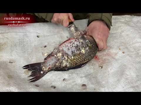 Тест рыбочистки рыбацкого ножа из стали D2. Русский булат. Специализированный нож для рыбалки