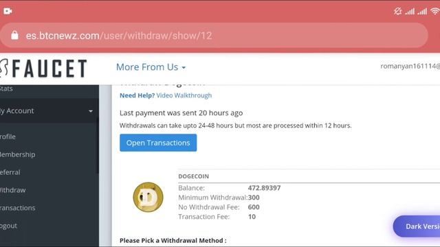 [Вывел 500 Doge]. [ES faucet] - крипто кран.Честный обзор. es.btcnewz.com FaucetPay краны
