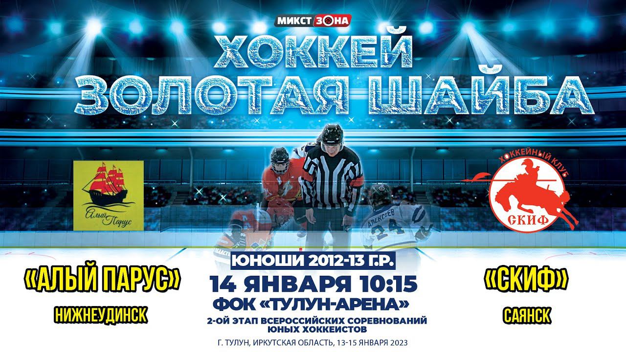 Матч между командами «Алый парус» (Нижнеудинск) – «Скиф» (Саянск). 2-ОЙ ЭТАП ВСЕРОССИЙСКИХ СОРЕВНОВАНИЙ ЮНЫХ ХОККЕИСТОВ. Место проведения: ФОК «Тулун-Арена», г. Тулун, Иркутская область. 13-15 января 2023 года.
