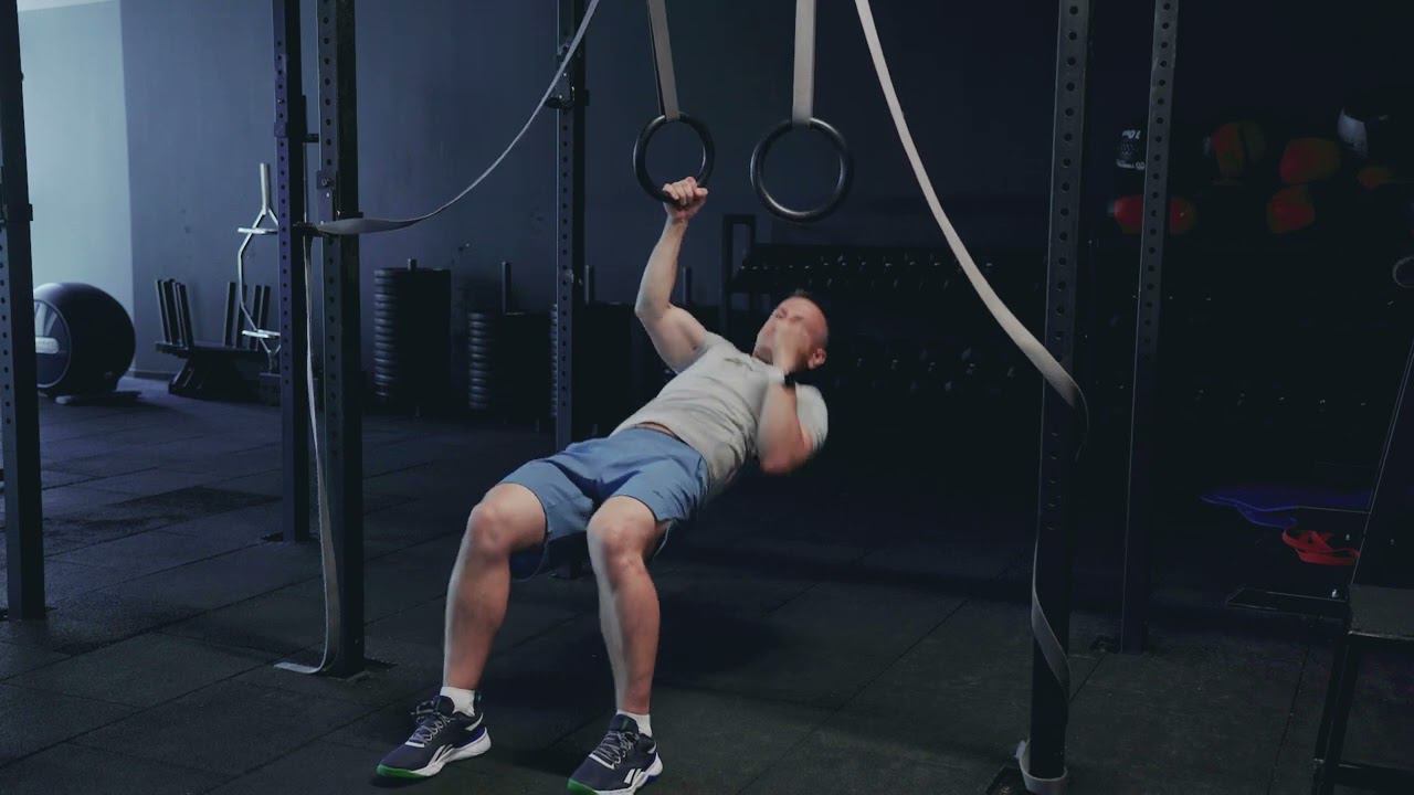 Горизонтальные подтягивания на кольцах с ротацией корпуса/ Ring row single arm and rotation