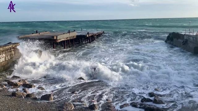 Крым. ЮБК. Мисхор. Ещё одно видео шторма на "Русалке", от 12.11.23