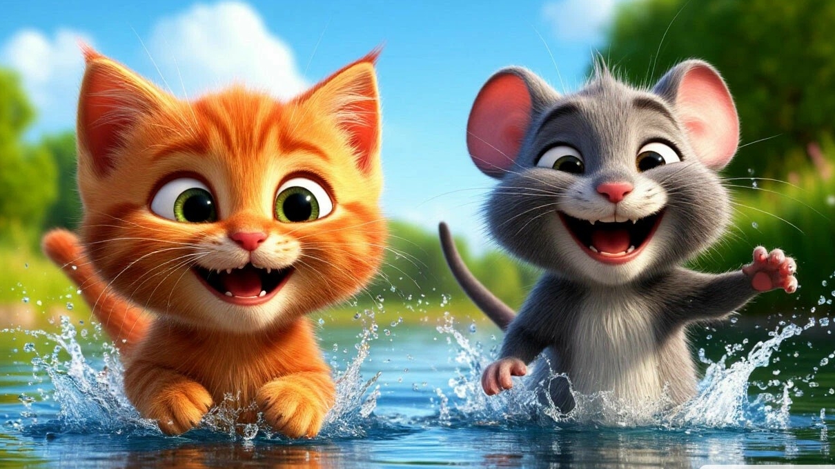 Классное видео о рыжем коте-316 выпуск: Мультфильм: Весёлая забава рыжего котенка и серого мышонка.