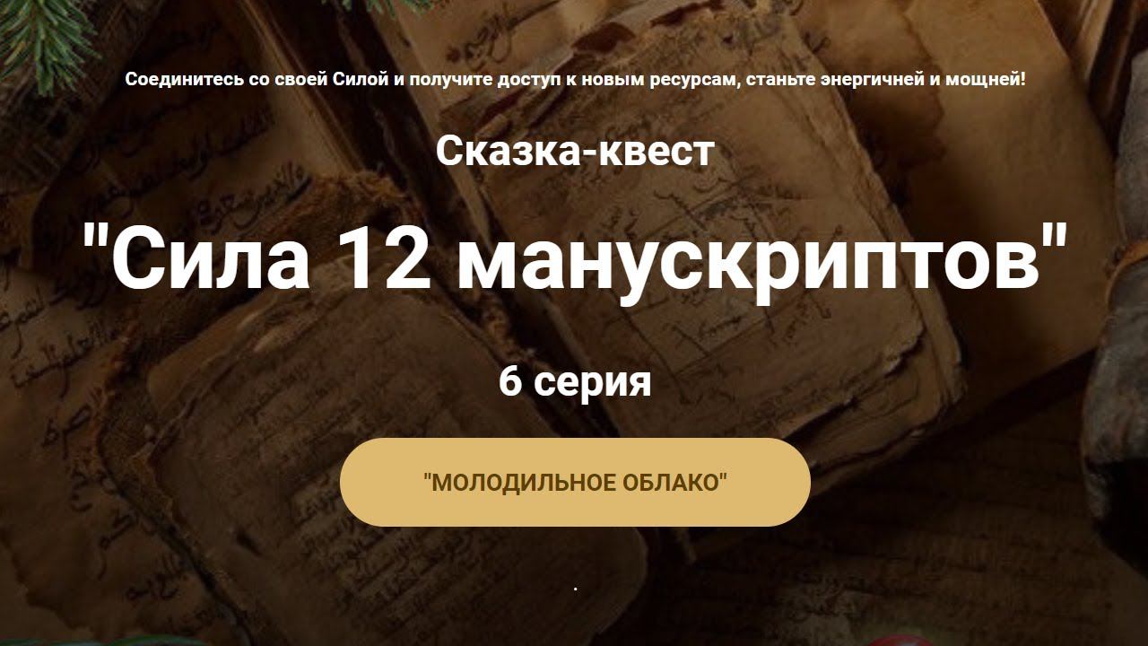 Сказка-квест "Сила 12 манускриптов" 6 серия "МОЛОДИЛЬНОЕ ОБЛАКО"