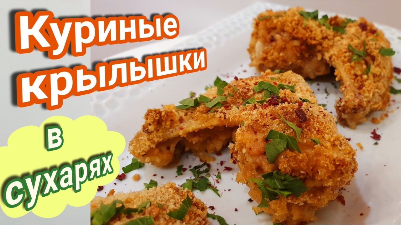 Куриные крылышки в духовке в панировочных сухарях.