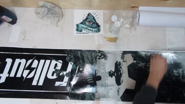 Нанесение полноразмерной сноуборд наклейки ROYLLENT на доску