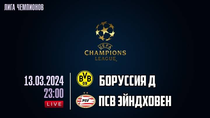 Футбол. Европа. Лига чемпионов УЕФА. 1/8 финала. Ответные матч Боруссия Д - ПСВ Эйндховен