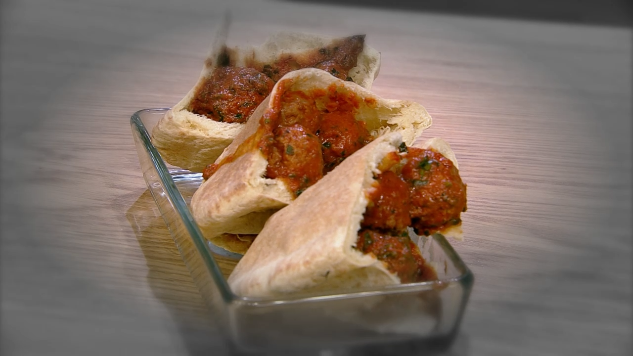 Фрикадельки в томатном соусе. Рулет с яйцом. Запеченный картофель с сырными чипсами