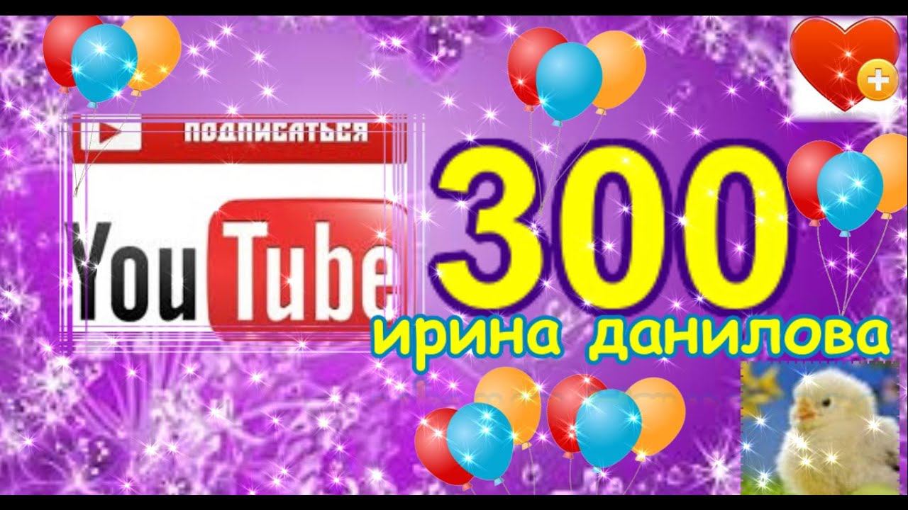 Сегодня на YouTube мой канал ИРИНА ДАНИЛОВА набрал 300 подписчиков. Это маленькое, но достижение! Спасибо всем подписчикам канала ИРИНА ДАНИЛОВА, за просмотры, оценки и комментарии! Удачи всем и процветания! ссылка на это видео: https://youtu.be/DFK82XnxuNg Подписываемся на мой канал и ставим лайки! ссылка на мой канал: http://www.youtube.com/channel/UC3Zh5O8LjeB8857_OCT7TgA