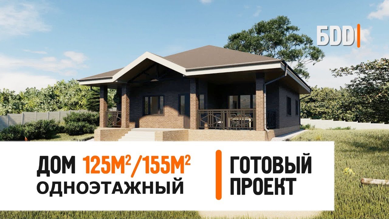 Одноэтажный дом 125 кв.м.-155 кв.м. | Дом 14 на 12 метров | Готовый проект