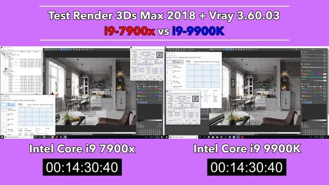 TEST RENDER 3DS MAX 2018 + VRAY 3.6 : i9 9900k vs i9 7900x