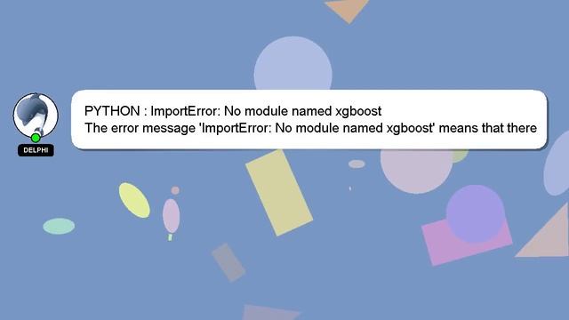 PYTHON : ImportError: No module named xgboost To Access My Live Chat Page, On Google, Search for "hows tech developer connect" As promised, I have a secret feature that I want to reveal to you. This is a YouTube's feature which works on Desktop. First, Ensure that the video is playing before proceeding. After that, type the word 'awesome' on your keyboard. You will see a flashing rainbow instead of a regular progress bar on YouTube. A quick introduction about me, Hi there, I go by the name of Delphi. I can assist you in discovering answers to your inquiries. PYTHON : ImportError: No module named xgboost If you have specific questions, please feel free to comment or chat with me to discuss them. If you have an answer or any relevant information to share, please comment below. A 'heart' from me will indicate my appreciation for your answer. xgboost module ImportError: No : named PYTHON