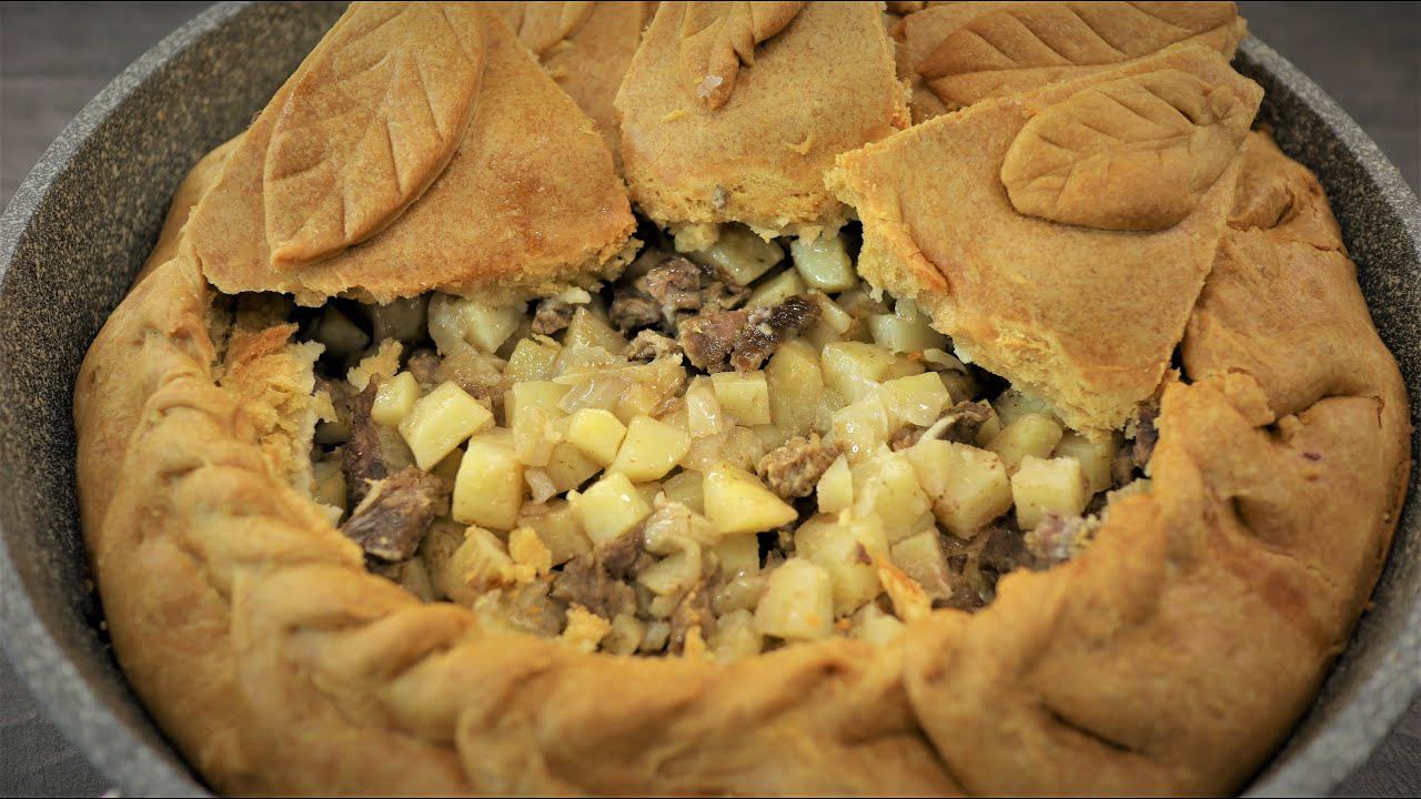 Вкусный и сытный пирог с мясом и картофелем. Татарская национальная выпечка Зур бэлиш