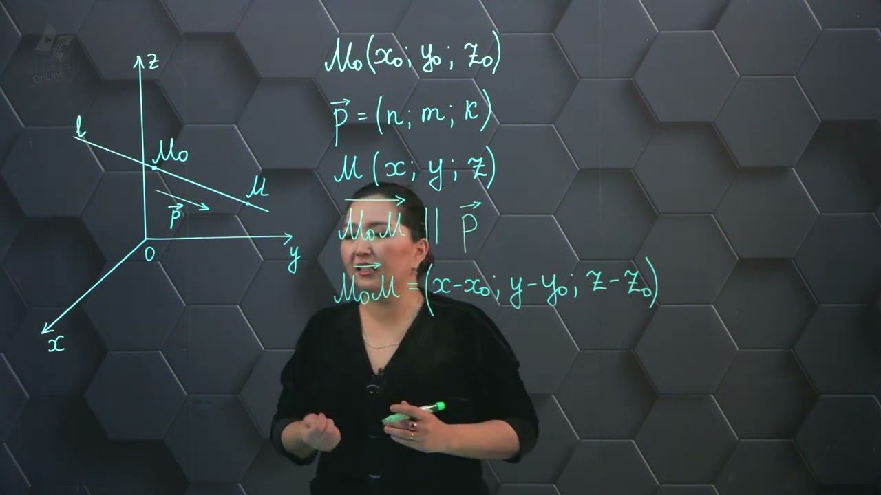 Кеңістіктегі түзу мен жазықтықтың теңдеуі. 11 сынып.