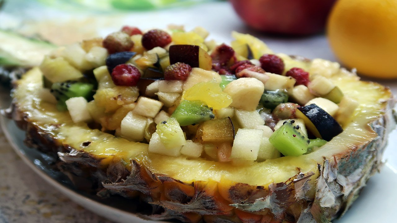Очень вкусный фруктовый салат в ананасе. Этот салат понравится и взрослым и детям