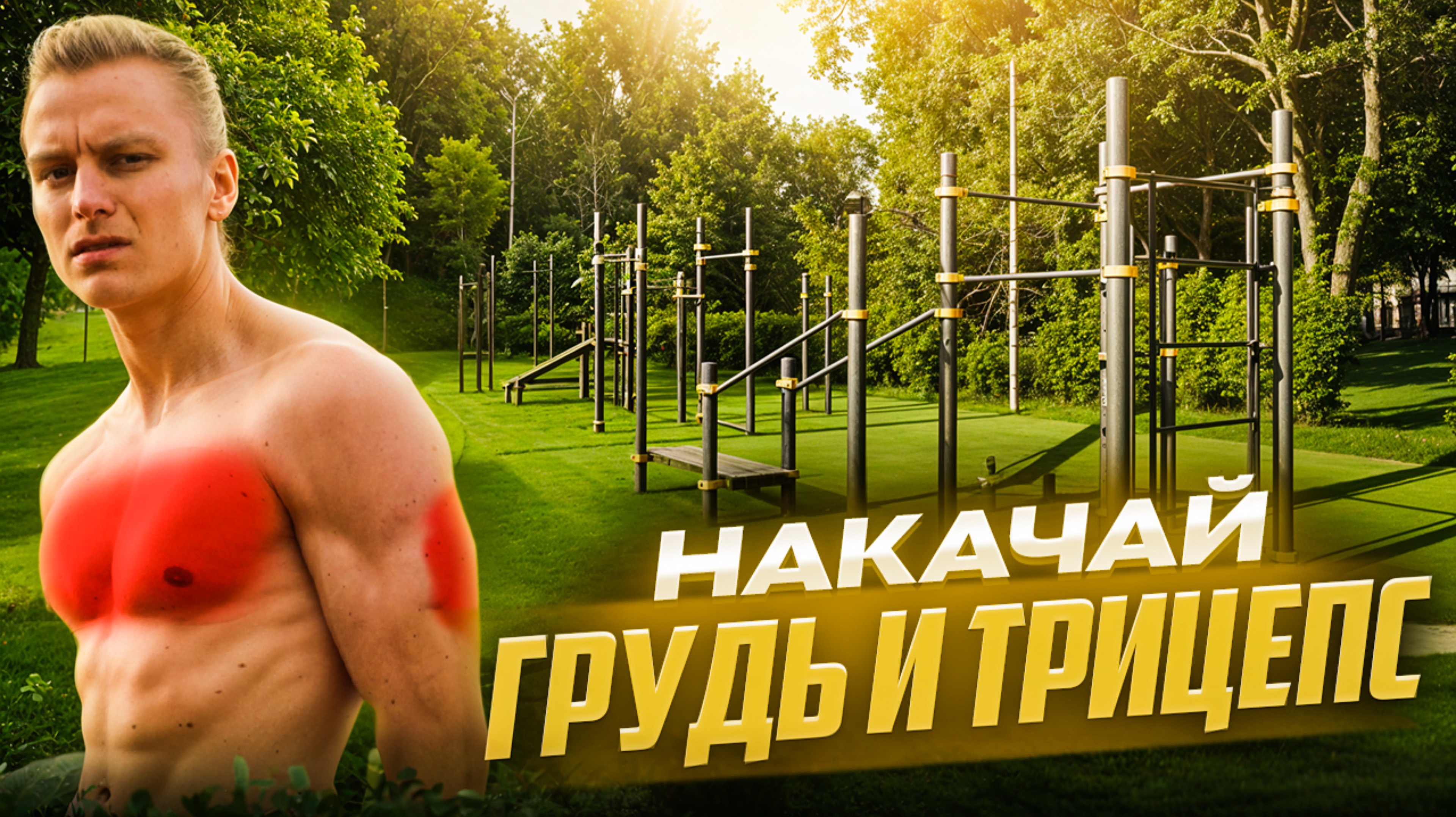 Тренировка груди и трицепса на спортивной площадке