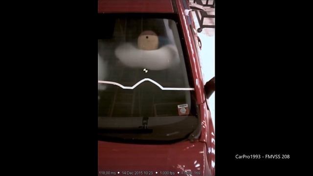 A Full-Overlap frontal impact at 25 Mph (40 Km/h) where both driver and passenger are unbelted. Dummies are 50th percentile male. FMVSS Research Test for ensuring baseline safety. Low risk of any injuries. Driver-Passenger HIC 42-85 (700 Max) Neck Tension (N) 579-736 (4170 Max) Neck Compression (N) 585-425 (4000 Max) Chest G's 29-33 (60 Max) Femur Loads (L/R - N) 5151/5939-4478/5317 (10000 Max)