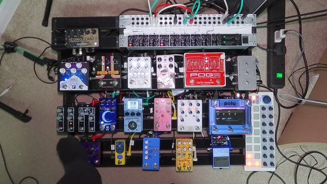 Signal chain: Hofner Colorama Boss SY-1 Poly Beebo (controlled by Arturia Beatstep) Ch1 - Bananana Mandala - Walrus Audio Slö Ch2 - Montreal Assembly Count to 5 - Old Blood Noise Endeavours Sun Light Ch3 - Electro-Harmonix POG2 - Pladask Draume Ch4 - Glowfly Duel Katzenjammer - MAK Blasar Deadbug Babel Zoom MS-70-CDR Chase Bliss Habit Tomkat Cloudy Mr Black Panatrem Behringer RX1602 V2 Shift Line Everest 2 Neunaber Iconoclast Repatched through the Behringer PX2000.